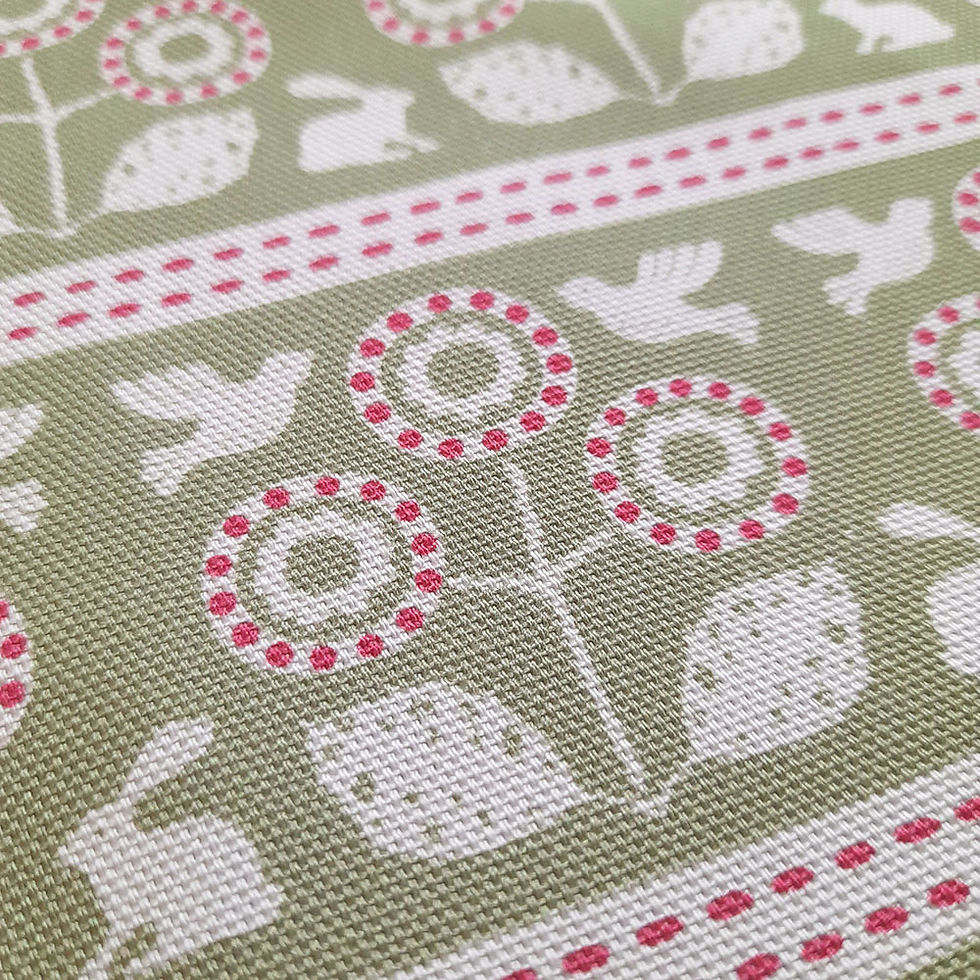 My organic cotton tea towels and aprons are designed by me and printed and made in the north of England.  My cushions and lavender bags are handmade by me from my 100% linen fabrics.